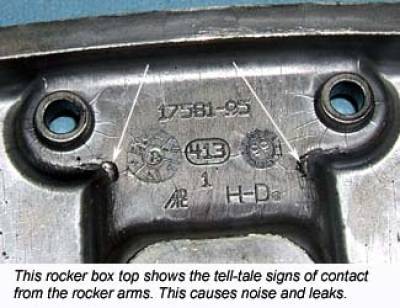 The ends of the rocker arms can wear down the area where they touch the lower rocker box.