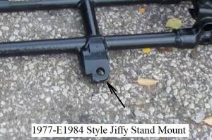 Around mid 1967, the jiffy stand bracket was reinforced with additional welding to the peg mount.