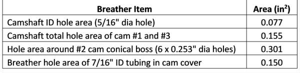 Table 1 – VLD Cam Chest Breather Hole Areas