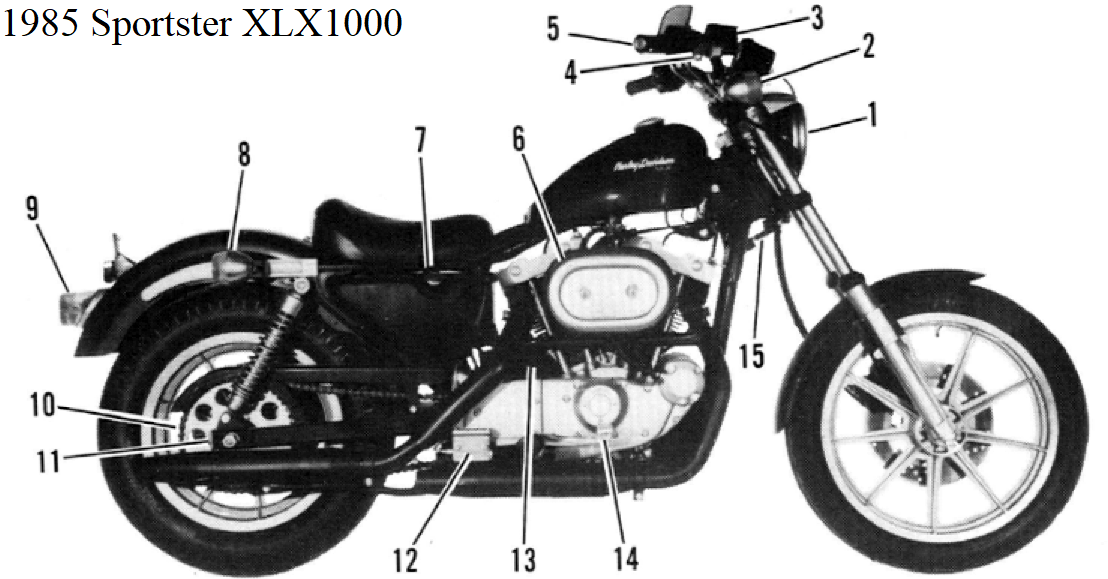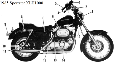 Example: (1HD1CAH16FY112016) designates a 1985 XLH 1000, stamped on the steering head with a sticker VIN on the right front frame downtube. The abbreviated VIN appears on engine right case (CAHB 112016) 4) |