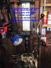 - Fix block of wood to vise and use proper size transfer punch to align to the quill.