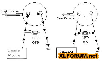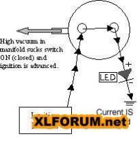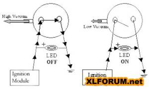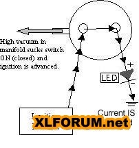 When you start the motor, vacuum closes the switch, putting the ignition in the fast advance mode.