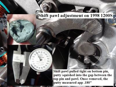 In the first pic below, the pawl was pulled up snug against the bottom pin and putty was pushed into the gap at the top.