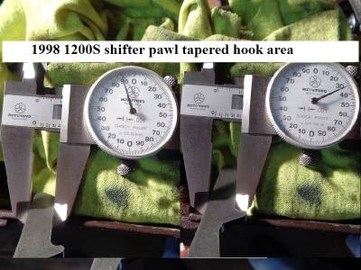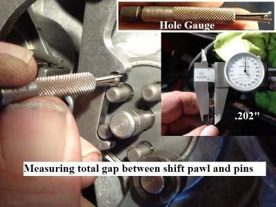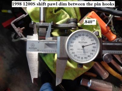 The shift pawl length between the pin hooks was measured below as was the outside to outside of the mating pins.