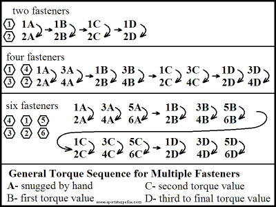 Parts with multiple bolts to accomplish clamp force across the entire part (covers, head etc.) require all bolts to end up the same torque.