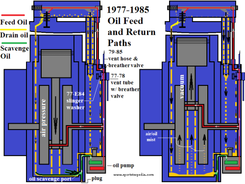In stock configuration, most all used oil ends up in the flywheel cavity.