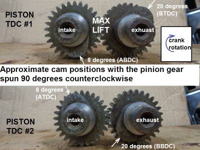 Now with the pinion gear rotated 90º counterclockwise, the same exact opening and closing times happens in the valve train Cam timing remained the same respectively but they just happen 90º later than they were originally.