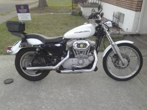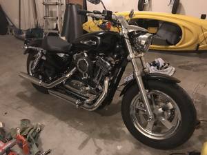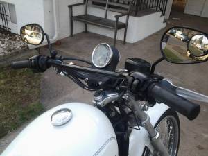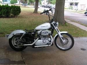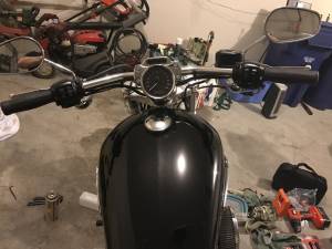 1“ (black) Moto Bar 4) w/ stock risers and cables on a 2005 XL883