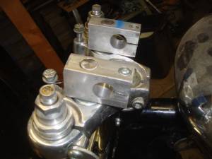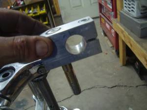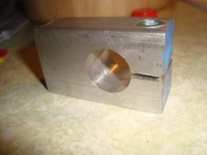 Start with some square stock aluminum, drill holes for the bars (7/8” / 1“ etc.) and mark center on the outside edge to cut a pinch slot. 8)